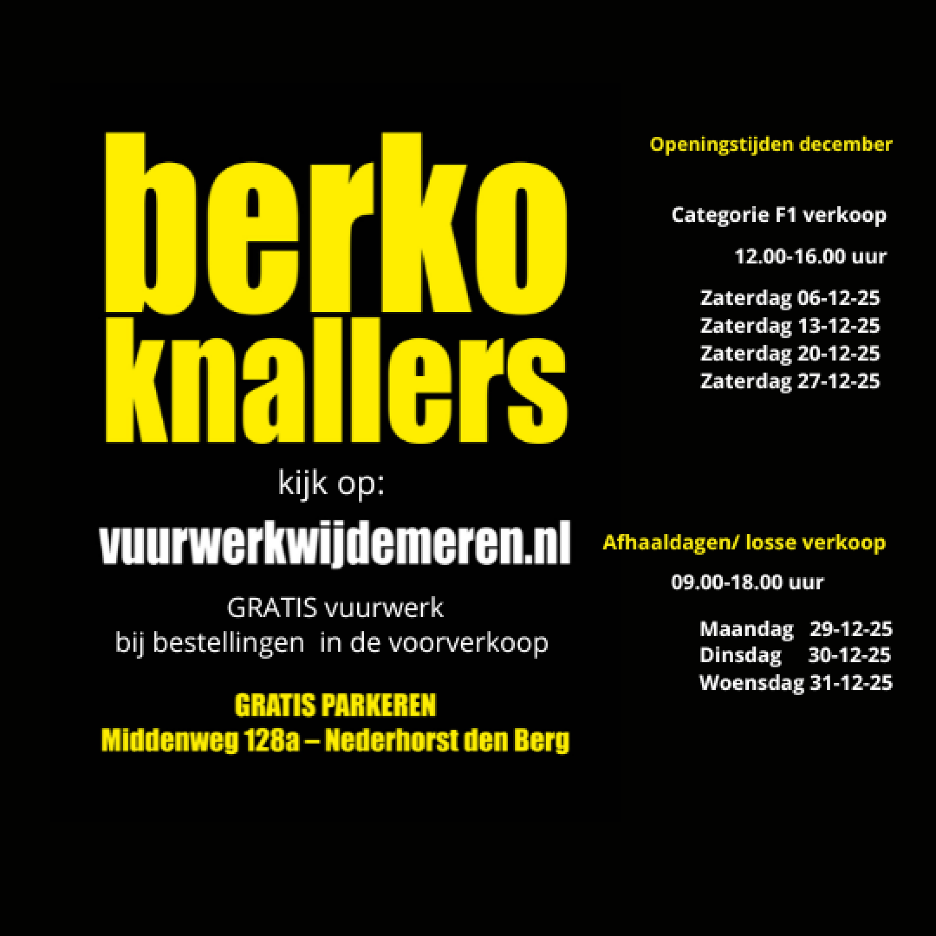 Openingstijden Berkoknallers - De Vuurwerkwinkel van Wijdemeren